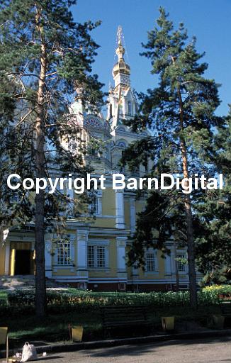 Zenkov cathedral in Panfilov Park. This tsarist-era building is made of wood and is one of the few buildings to have survived the 1911 earthquakes. Almaty, Kazakhstan. July 2002