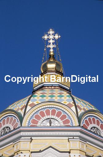 Zenkov cathedral in Panfilov Park. This tsarist-era building is made of wood and is one of the few buildings to have survived the 1911 earthquakes. Almaty, Kazakhstan. July 2002