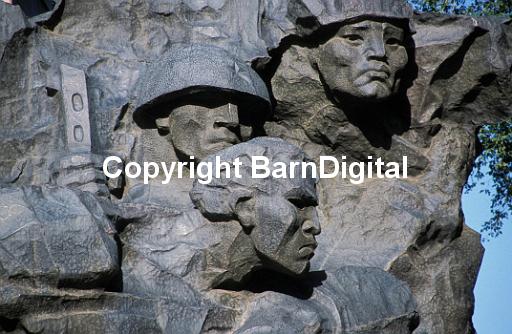 Part of the war memorial in Panfilov Park. The full name of the park is ‘Park Named after the Twenty Eight Panfilov Heroes’. Almaty, Kazakhstan. July 2002.