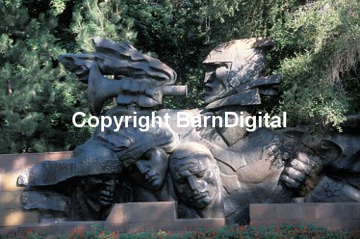 Part of the war memorial in Panfilov Park. The full name of the park is ‘Park Named after the Twenty Eight Panfilov Heroes’. Almaty, Kazakhstan. July 2002.