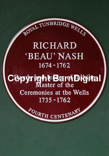PLaque saying 'Richard Beau Nash 1674-1762 Dandy and Leader of Fashion Master of the Ceremonies at the Wells 1735-1762'. The Pantiles , Royal Tunbridge Wells, Kent, UK. 07 August 2006.
