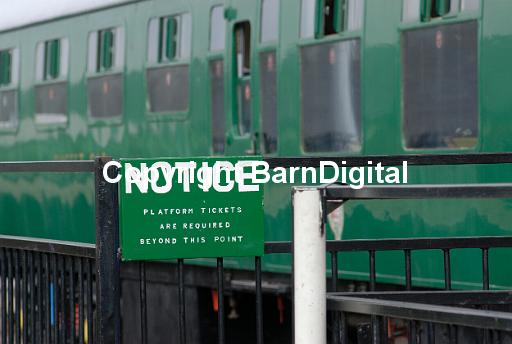 warning travel transportation transport train track steam station sign railway rail public transport notice MIchaelGrantImages Michael Grant Images green engine communications carriage BarnDigital Barn Digital attention