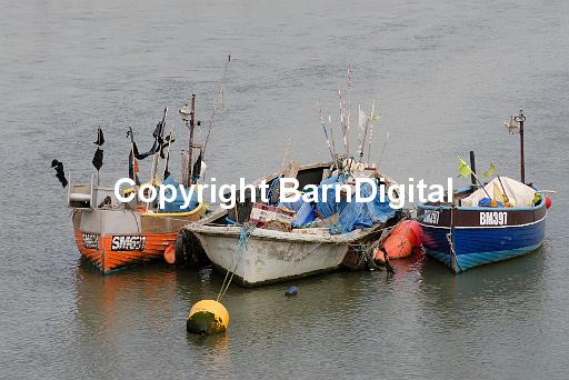 Small fishing boats moored in the estuary of the River Adur. Shoreham, Sussex, UK. 08 August 2006.