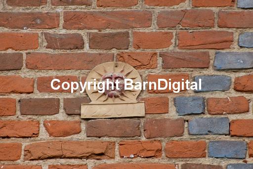 architecture Barn Digital BarnDigital brick brown building green historic history material metal Michael Grant MIchaelGrantImages red sign star sun symbol