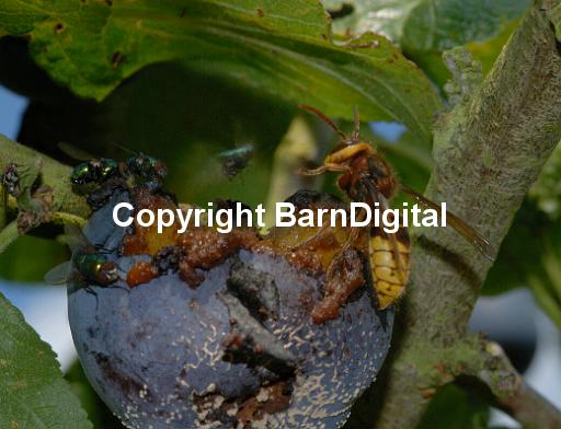 yellow Wasp sting six legged science rotten protective colouration plum nature mould MIchaelGrantImages Michael Grant juice Insecta Insect Hymenoptera fruit eye eat devour compound eye colouration coloration brown big BarnDigital Barn Digital Apocrita