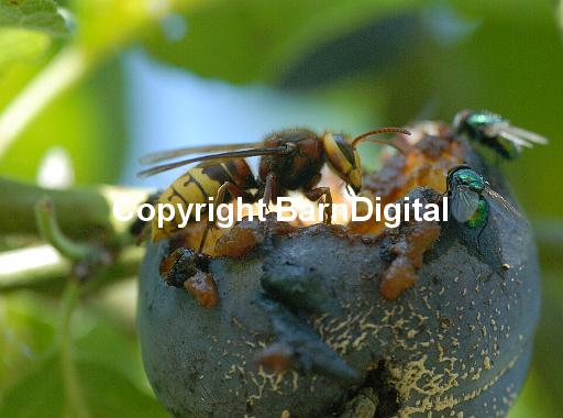 yellow Wasp sting six legged science rotten protective colouration plum nature mould MIchaelGrantImages Michael Grant juice Insecta Insect Hymenoptera fruit eye eat devour compound eye colouration coloration brown big BarnDigital Barn Digital Apocrita