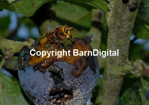 yellow Wasp sting six legged science rotten protective colouration plum nature mould MIchaelGrantImages Michael Grant juice Insecta Insect Hymenoptera fruit eye eat devour compound eye colouration coloration brown big BarnDigital Barn Digital Apocrita