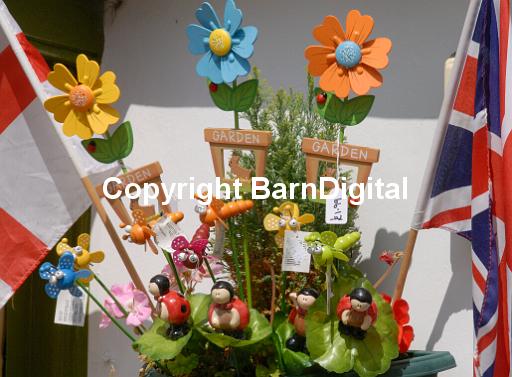 Barn Digital BarnDigital bee blue bright flag flower garden garish green insect Michael Grant MIchaelGrantImages red yellow