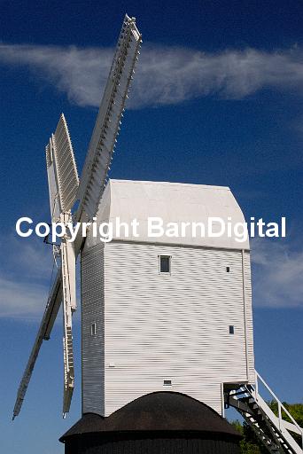 Jill Windmill is a post corn windmill and has been restored to working order. Clayton, West Sussex, UK. 25 August 2006.