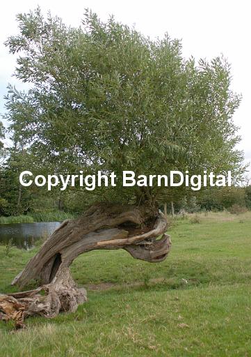An ancient pollarded willow (Salix species) on the banks of the River Stour between Flatford Mill and Dedham, the centre of Constable Country. East Bergholt, Suffolk. UK. 31 August 2006