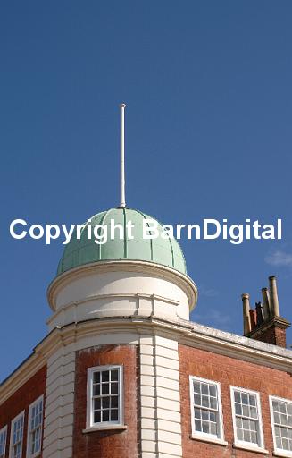 Small dome with flag pole at the corner of the Opera House. The building was built in 1902 and looks its age. Since its prime it has been a cinima and a bingo hall and is now a pub. Tunbridge Wells, Kent, UK. 01 September 2006