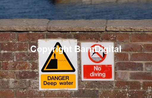 attention Barn Digital BarnDigital beware black danger dock harbour marine maritime Michael Grant MIchaelGrantImages ocean port quay ref sea sign warning water white yellow