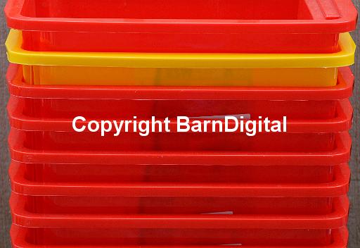 Barn Digital BarnDigital box bright color colour container crate Michael Grant Images MIchaelGrantImages orange pile plastic red rim stack yellow