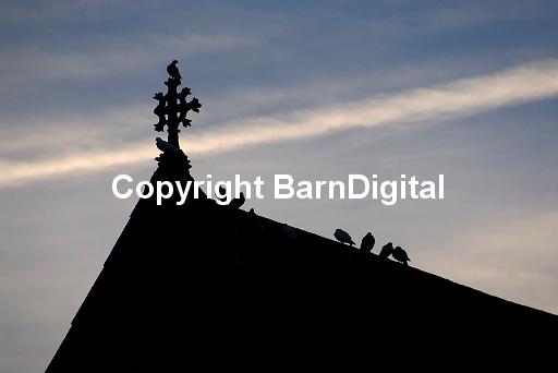twilight sunset sundown sun sky Silhouette set red pink orange nightfall evening dusk colour color close of day pigeon fly feral pigeon feather dove Columbidae bird beak avine avian aves architecture Barn Digital BarnDigital building Christian Christianity church Church of England cross Michael Grant Images MIchaelGrantImages roof