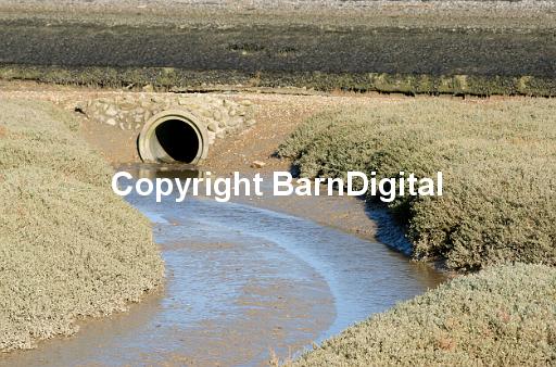 Barn Digital BarnDigital beach coast ditch drain embankment empty estuary low tide marine maritime Michael Grant Images MIchaelGrantImages moor mud pipe river salt flat salt marsh saltflat saltmarsh sea sea defence sea defense sea wall tidal tide wall water