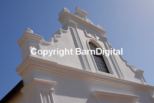 arch BarnDigital blue building church ornate Rhenish Church Rynse Kerk Stellenbosch white window