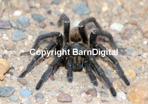 A Baboon Spider walks across the arid stony ground near its burrow. Hangklip, Western Cape, Republic of South Africa. 17 November 2006