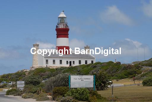 Cape Agulhas Lighthouse. Cape Agulhas is the most southerly point of the contintent of Africa and is where the Indian and Atlantic Oceans meet. Cape Agulhas, Western Cape, Republic of South Africa. 18 November 2006.