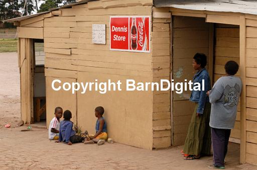 boy women ochre paint store Qolweni Township South Africa ad adv play poster shop sign sit stand store women African