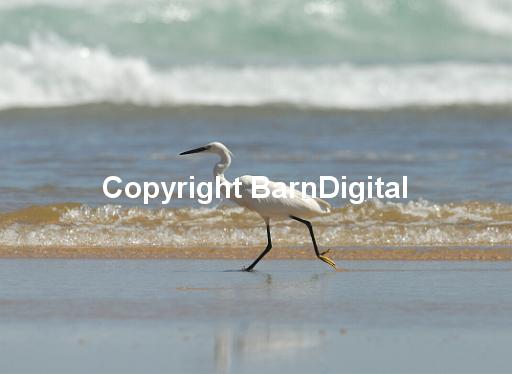 Ardeidae aves avian avine Barn Digital BarnDigital beach beak bill bird breaker dainty egret elegant feather fish fly food green heron Heron family hunt hurry leg long Michael Grant Images MIchaelGrantImages neck run sand search surf wave white wing