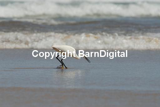 Ardeidae aves avian avine Barn Digital BarnDigital beach beak bill bird breaker dainty egret elegant feather fish fly food green heron Heron family hunt leg long Michael Grant Images MIchaelGrantImages neck sand search surf wave white wing