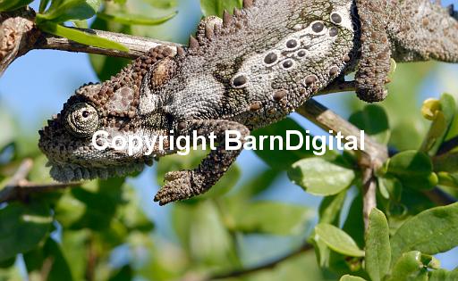 A Dwarf Chameleon (Bradypodion species) stands still in a bush watching for insect prey. Addo Elephant National Park. South Africa. 26 November 2006. A Dwarf Chameleon (Bradypodion species) stands still in a bush watching for insect prey. Addo Elephant National Park. South Africa. 26 November 2006. A Dwarf Chameleon (Bradypodion species) stands still in a bush watching for insect prey. Addo Elephant National Park. South Africa. 26 November 2006.