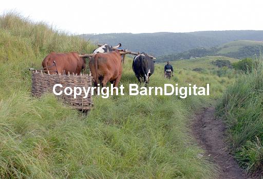 ploughman plough team four oxen ox tow sledge Xhosa hilly countr