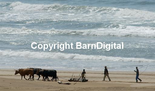 ploughman plough team four oxen ox beach tow sledge hilly countr BarnDigital
