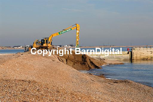 wall sea wall sea defense sea defence ocean maritime marine long shore drift groyne embankment dyke coast beach Barn Digital BarnDigital blue bucket bulldozer current damage digger dumper erode erosion estuary flow hydraulic JCB land loss machine machinery Michael Grant Images MIchaelGrantImages plant River sea tidal tide water wave wind yellow