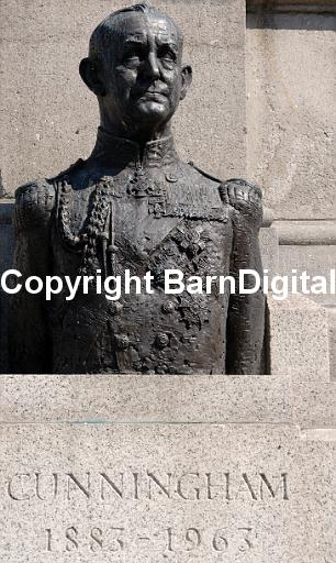 Bronze bust of Admiral of the Fleet Andrew Browne Cunningham, 1st Viscount Cunningham of Hyndhope.Trafalgar Square, London, England, UK 02 June 2007