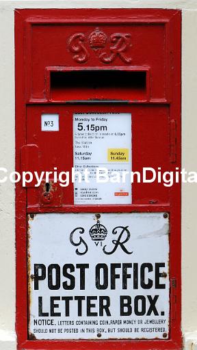 Red letter box black white enamel sign saying GR Post Office Let