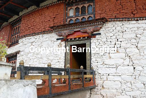 The entrance to the National Museum of Bhutan in the round watchtower above Paro Dzong. Paro, Druk Yul, Bhutan. 10 November 2007.