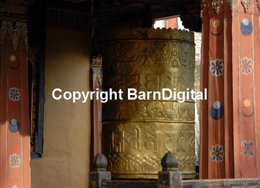 Prayerwheel in the National Museum of Bhutan in the watch tower of Paro Dzong. Paro, Druk Yul, Bhutan. 10 November 2007.