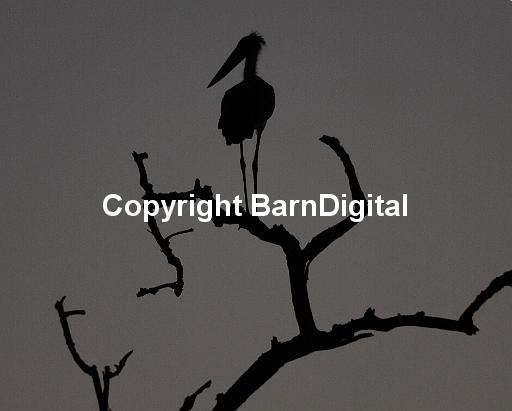 Lesser Adjutant Stork Leptoptilos javanicus stand dead tree silh