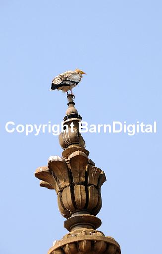 palace roof sky bird beak neck wing feather bald brown scavenger
