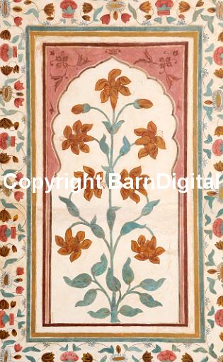 Painted ornate decoration flower Ganesh Pol gate Amber fort mass