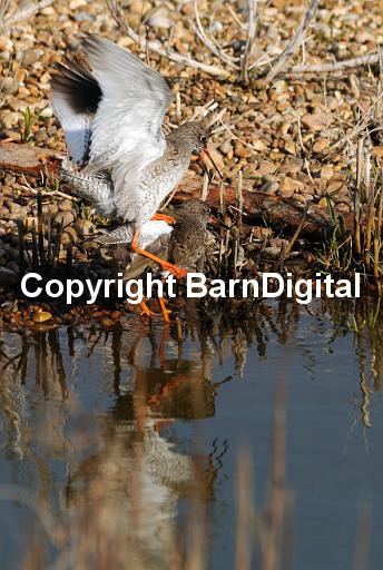 Redshank Tringa totanus pair mate mating stones shallow lake Rye