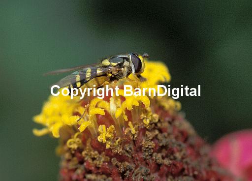 yellow black mimic Batesian mimicry wasp Hoverfly Syrphus ribesii feeding pollen nectar Diptera Syrphidae fly hover insect insecta true fly pollenation science nature wildlife wild life BarnDigital Barn Digital Michael Grant