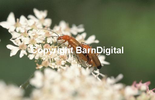 science nature nectar white flight flower insect insecta bright summer beetle Coleoptera Cantharidae Umbelliferae carrot family plant botany weed green flower pollen pollenation blossom anther filament stigma style pistil reproduction male female colour color herb herbaceous plant science nature wildlife wild life closeup close up BarnDigital Barn Digital Michael Grant