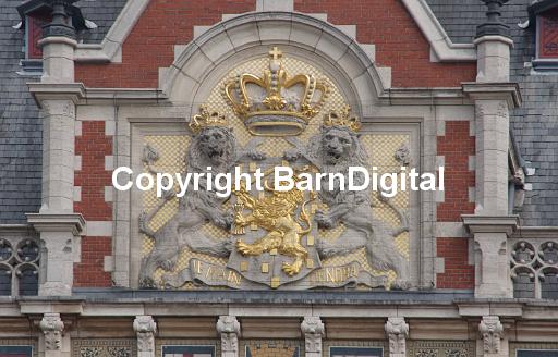 Barn Digital BarnDigital brick building city communications Country crown decorative engine Europe gold gothic Holland lion Michael Grant MIchaelGrantImages Nederland Netherlands ornate public transport rail railway red station stone street town track train transport transportation travel urban