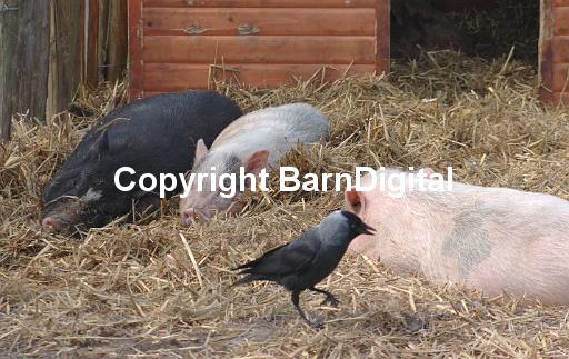 swine Suidae sty sow porker pork pig mammal boar bacon animal wing fly feather Crows Crow family Corvidae Corvid bird beak avine avian aves Barn Digital BarnDigital Michael Grant MIchaelGrantImages