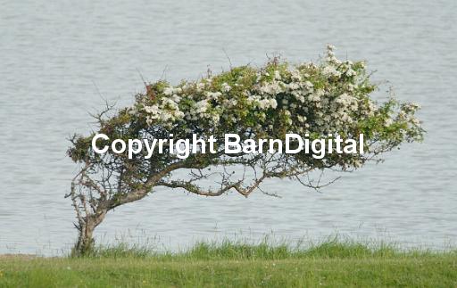windswept wind stunted storm prevaling wind moulded gale bent Barn Digital BarnDigital botany bush Crataegus monogyna defence defend defense green haw Hawthorn leaf may Michael Grant MIchaelGrantImages nature plant prick quickthorn Rosaceae Rose family science thorn timber tree wood woody