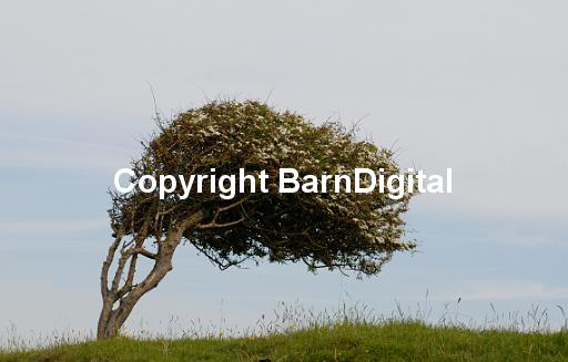 windswept wind stunted storm prevaling wind moulded gale bent Barn Digital BarnDigital botany bush Crataegus monogyna defence defend defense green haw Hawthorn leaf may Michael Grant MIchaelGrantImages nature plant prick quickthorn Rosaceae Rose family science thorn timber tree wood woody
