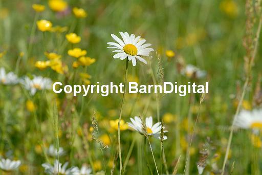 White and yellow oxeye daisy (Chrythanthemum leucanthemum, Leucanthemum vulgare) flowers. Nature Reserve , Marden Meadow, Marden Kent. UK. 11 June 2006