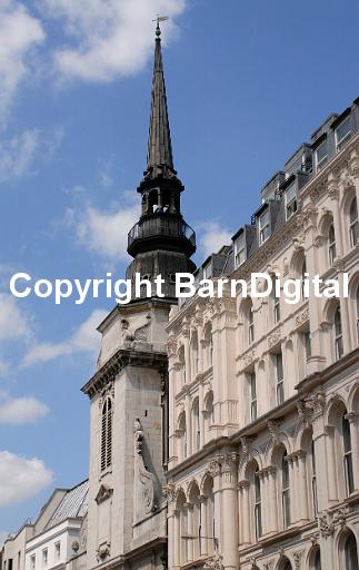 urban United Kingdom UK trade town The City street square mile market London Great Britain finance England down town commerce City of London City buildings tower spire Sir Christopher Wren religion ornate monument history historic decorated construction City Church Church of England church Christianity Christian building architecture Barn Digital BarnDigital Michael Grant MIchaelGrantImages