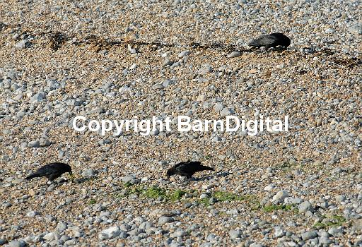 wrack stone shingle seaweed sand pebble jetsam high water line gravel flotsam dune beach wing fly feather Crows Crow family Corvidae Corvid bird beak avine avian aves Barn Digital BarnDigital black juvenile Michael Grant MIchaelGrantImages young