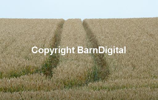 ripe harvest green golden brown track path vehicle tractor petrol motor vehicle motor engine wheat staple nutrition grain food field farm cultivate corn cereal agriculture Barn Digital BarnDigital Michael Grant Images MIchaelGrantImages