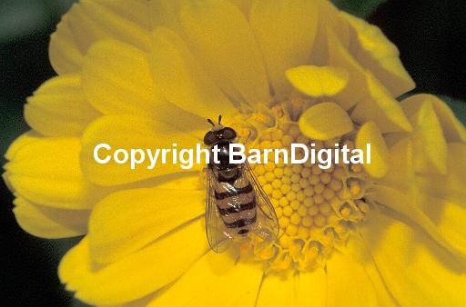 yellow black mimic Batesian mimicry wasp Hoverfly Syrphus ribesii feeding pollen nectar Diptera Syrphidae fly hover insect insecta true fly ollenation science nature wildlife wild life BarnDigital Barn Digital Michael Grant