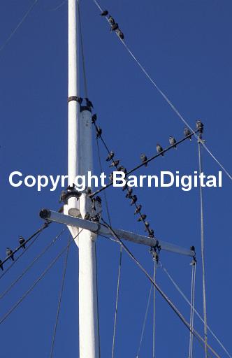 Blue sky white flock chatter bird aves wildlife wild life science nature perch rest forage marsh Sturnidae BarnDigital Barn Digital Michael Grant