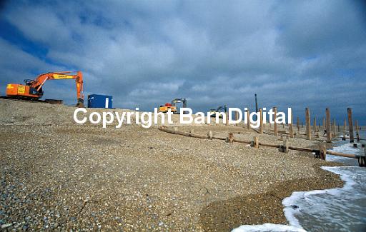 excavator machine break water sea tide erosion long shore drift tide current public works machinery sea sky coast beach BarnDigital Barn Digital Michael Grant